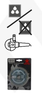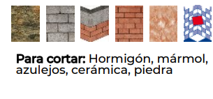 - Para cortar: Hormigón, mármol, azulejos, cerámica, piedra.
